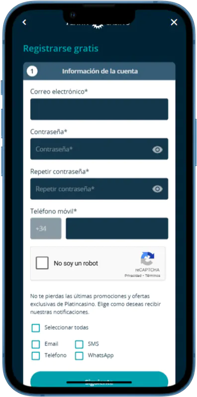 Registro e inicio de sesión en la aplicación móvil del PlatinCasino España